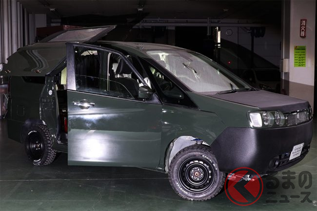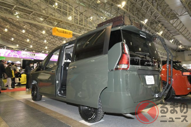 さらには、「ラフェスタ(B30)」のガラスルーフを移設し、ルーフキャリア、リアラダーに加えて特徴的な「はね上げ式右リアドア」を採用するなど、個性を表現しました。
