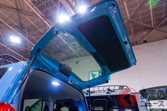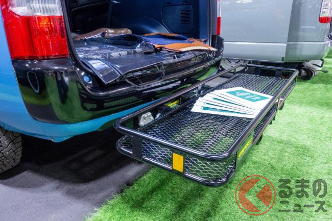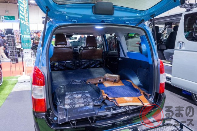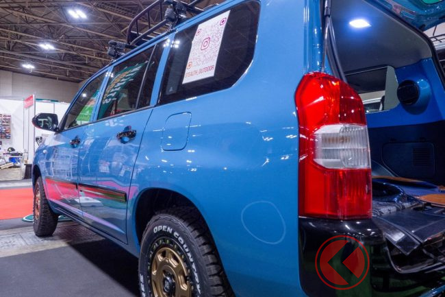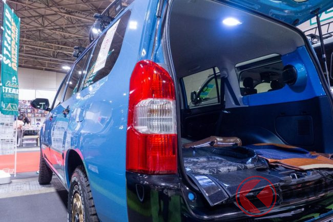 スタッフに話を伺うと、この新しいカスタムプロボックスは「アウトドアという流行に合わせて作った」と話していました。その際に「女性でも乗りやすいよう、プロボックスらしい格好良さを維持しつつ、カワイさも取り入れた」とのことです。