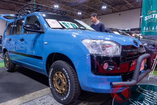 めちゃ“オシャ”な「プロボックス”SUV”」登場!? “ド迫力バンパーガード装備”でもはや「トヨタの商用バン」感なし! 鮮烈ブルーのステルス仕様とは