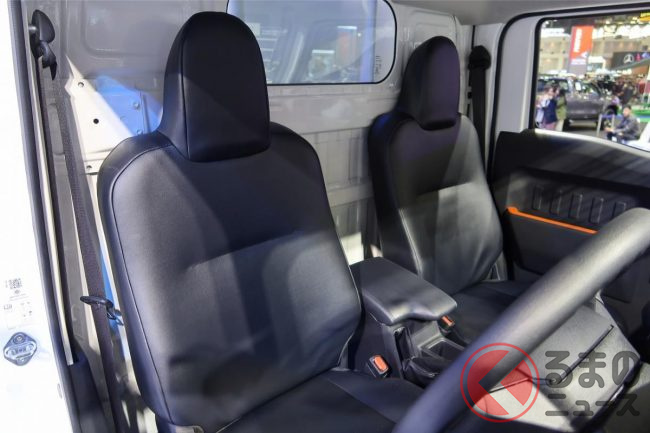 さらに興味深かったのはインテリアです。ドアトリムはほぼ1枚の樹脂、助手席のシートは調整機能のない固定式、シート下のフロアはカーペットがなく鉄板むき出しなど、コストを抑える工夫が髄所に盛り込まれていました。