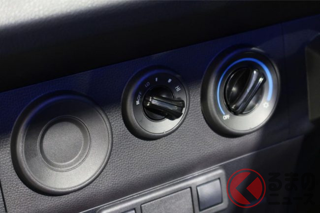 通常のエアコンは、乗員の正面や足元など、風が出る場所を切り替えられます。しかし、このハイラックス チャンプはそれがないのだから衝撃でした。これもコスト削減策のひとつです。