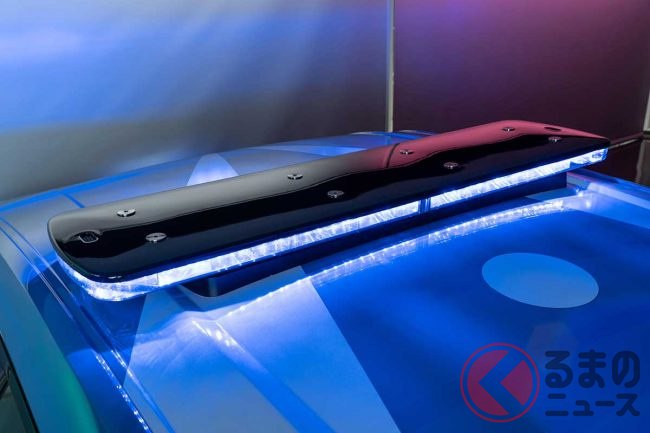 ドアには警察のロゴが反射フィルムで施され、ルーフにはブルーLEDライトを備えたライトバーとツートンカラーの電動サイレンが取り付けられました。
