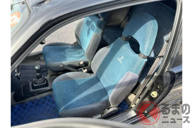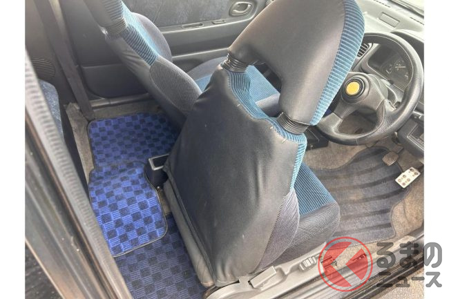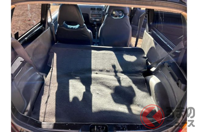 インテリアは経年による劣化が見られるものの、純正シートやシフトノブが残されており、ルーフライニングの状態や汚れやすいラゲッジスペースも良好な状態といえます。