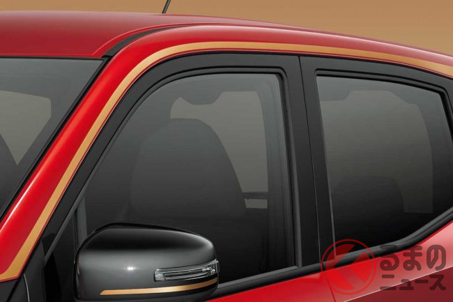 ラジエーターグリル上部のフィニッシャーをカッパー色化するとともに、カッパーストライプの入ったブラックドアミラーと、スモーククリアの16インチのアルミホイールを採用しています。シート地には、カッパーステッチを施したブラックの合成皮革素材を採用しました。