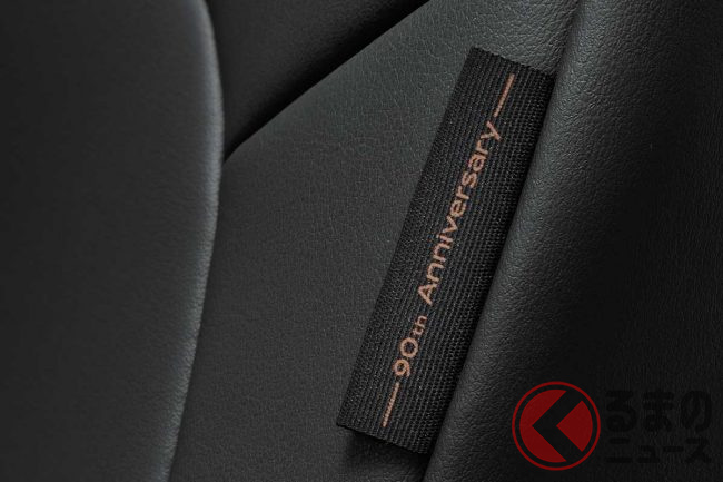 90周年記念車に共通する特徴として、エクステリアは電動車をイメージしたカッパー色をアクセントカラーとして各所にあしらいました。黒味がかった色調をベースとした専用ホイールやドアミラーなども装備し、特別感を演出します。
