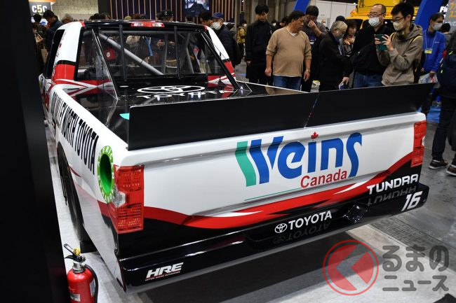 トヨタ「爆速トラック」実車展示! 存在感スゴいけど中身はスッキリ!? 「謎のタンドラ」が置かれたワケ
