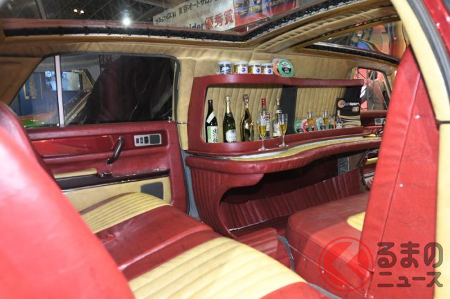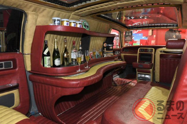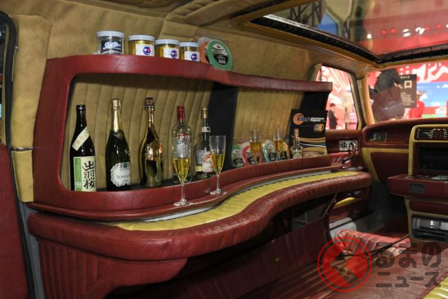 さらに驚くのは内装の豪華さです。リムジン化された広い車内にはバーカウンター&テーブルを設置することで、世界でも類を見ないVIP感を演出しました。