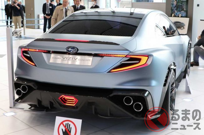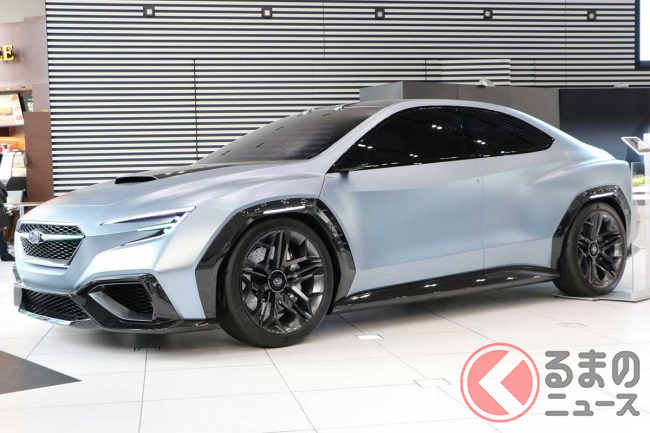 大型ウイングがド迫力! スバルの斬新「スポーツセダン」がめちゃ速そう! STIエアロフル装備の「ヴィジヴ」って何者?