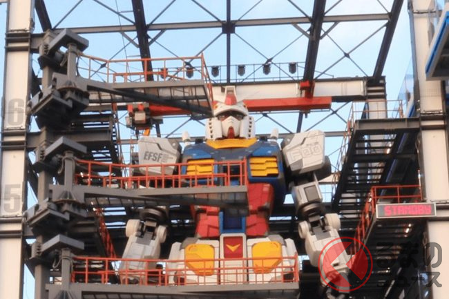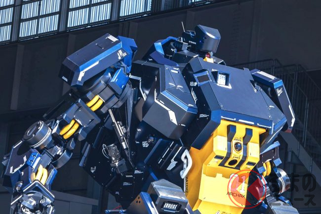 巨大な搭乗型ロボット「ARCHAX」が、期間限定で「GUNDAM FACTORY YOKOHAMA(横浜山下ふ頭)」に実機展示されていますが、同機はこの会場に常設展示されている「動くガンダム」と人知れぬ関係性があるといいます。