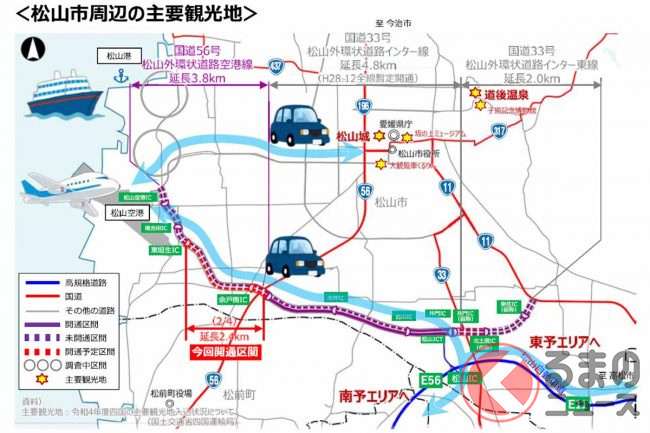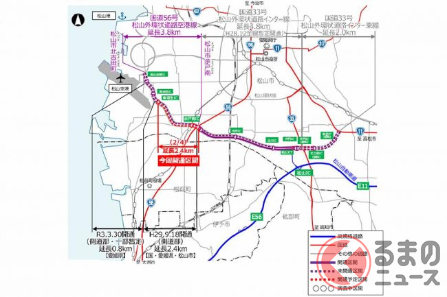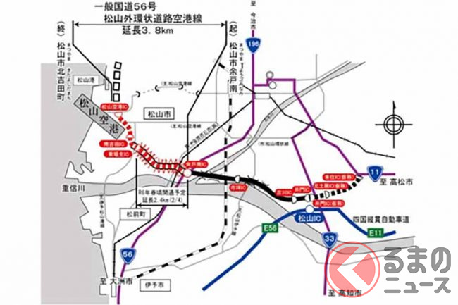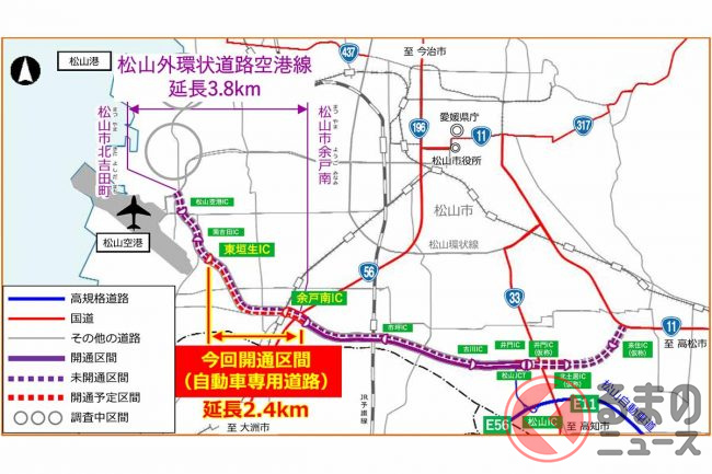 空港が近くなる! 通行無料&高速道直結バイパス「松山外環状道路」2024年2月延伸