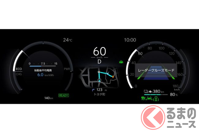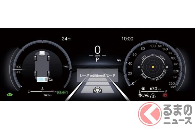先進安全装備では、予防安全技術Lexus Safety System +の機能を拡充、プリクラッシュセーフティ(PCS)の検出対象および機能を拡大させました。具体的には、ミリ波レーダーと単眼カメラを組みわせたセンサーにより高い認識性能と信頼性を担保することで、作動対象を拡大し、自動二輪車(昼)や自転車運転者 (夜)の検出対象に拡大しています。