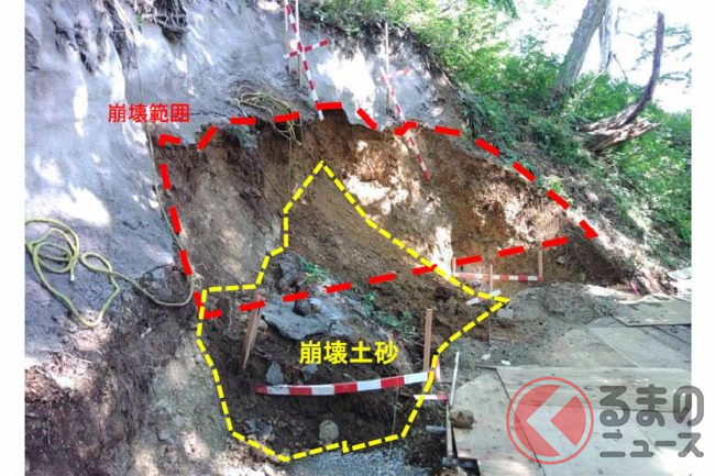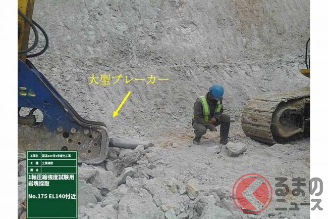 国交省の施工区間は、2023年夏に豪雨で斜面が崩落して追加工事をしたことにより約2か月遅延したこと、想定外の強固な岩盤が出てきて通常の機械では対応できず大型ブレーカーを用いた施工に変更して約5か月遅延したことなどが、工程に影響したといいます。