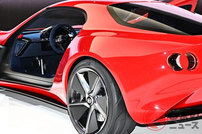 マツダ「新型2ドアスポーツカー」登場へ! 「次期型RX-7か!?」と大反響呼んだ「ロータリー搭載」モデル、市販化は? 「ICONIC SP」が来福