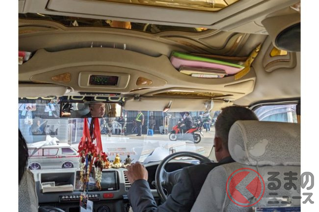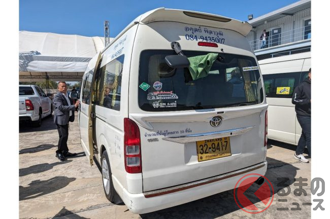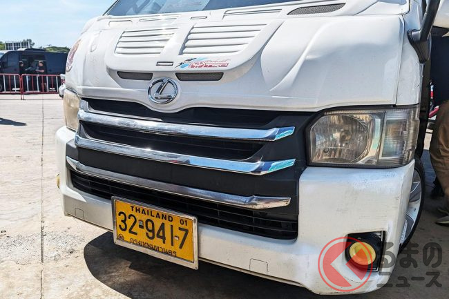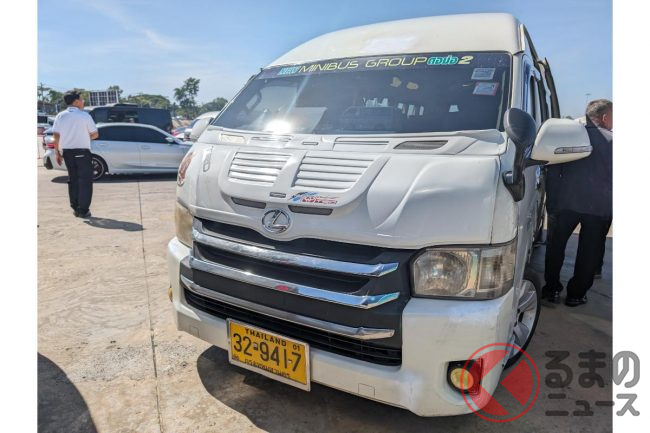 タイでは日本と違う移動の足としてトヨタ「ハイエース」の高級仕様「ベンチュリー(ハイエース200系)」で送迎されることがあります。今回レクサスバッチを付けたモデルに乗ることができました。