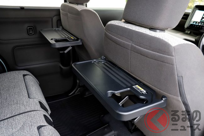 また、前席背面には「パーソナルテーブル」が備わり(こちらも一部グレードを除く)、ドリンクホルダーのほか、大型のタブレットやスマートフォンを立てかけることができるタブレットストッパーも備わっているほか、後席用のUSB電源ソケットも設置されているので、ちょっとした待ち時間でも退屈せずに過ごすことができるのも魅力的です。