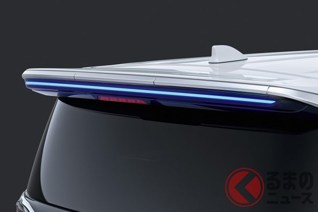 またリアビューには「リヤスタイリングキット(リヤスカート+ドレスアップマフラー)」と「リヤクォーターガーニッシュ」「バックドアガーニッシュ」が装着され、通常のヴェルファイアとの差別化を図られているほか、イグニッション連動で点灯する「イルミルーフスポイラー」が夜間の姿にも華を添え、足元は「20インチアルミホイール&タイヤセット」によって引き締められました。