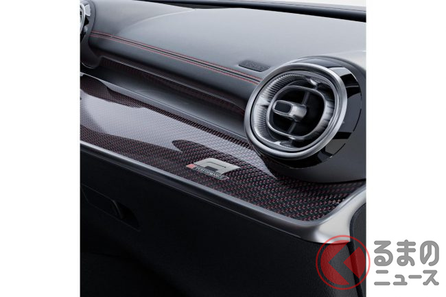 黒色基調のインテリアもアクセントとして赤色を取り入れているのが特徴。本革シートのステッチやシートベルトが赤色になっているほか、ダッシュボードにも黒×赤のAMGカーボンファイバートリムが備わり、乗り込んだ瞬間から走りへの期待が高まるコックピットとなっています。