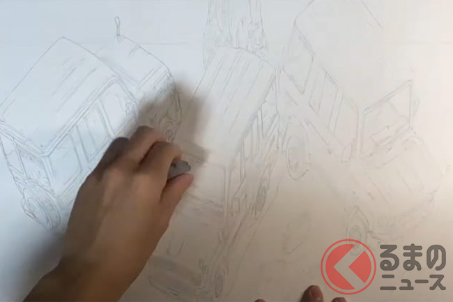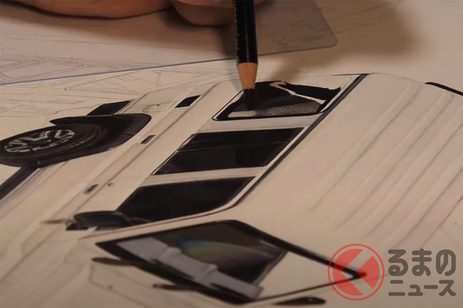 ランクルの公式YouTubeとなる「ランクルちゃんねる」では、発泡スチロールで作ったもの、超ミクロなものなど様々なカタチで新型ランクル70が作られていますが、鉛筆で書き上げたランクルとはどのようなものなのでしょうか。
