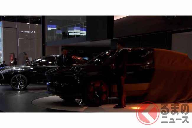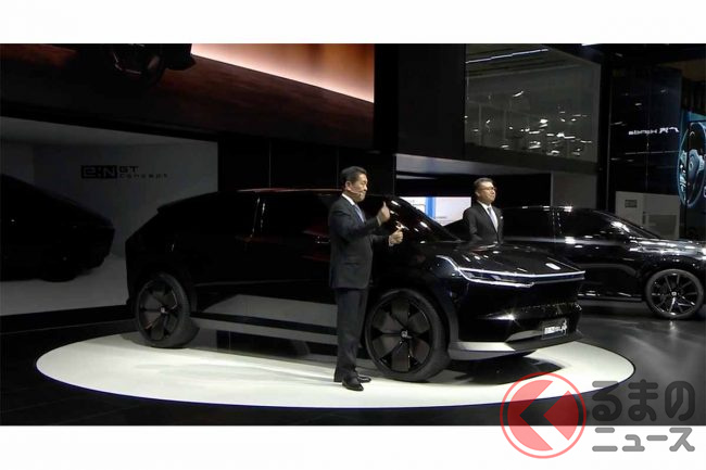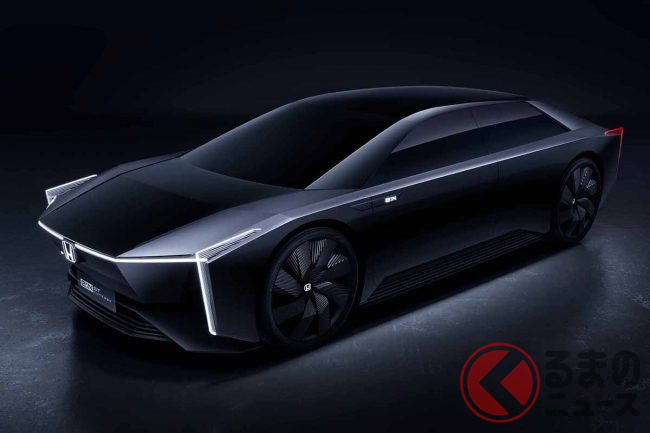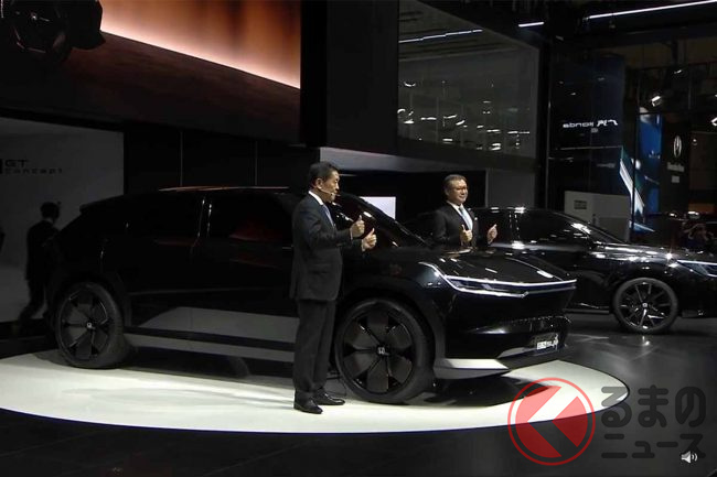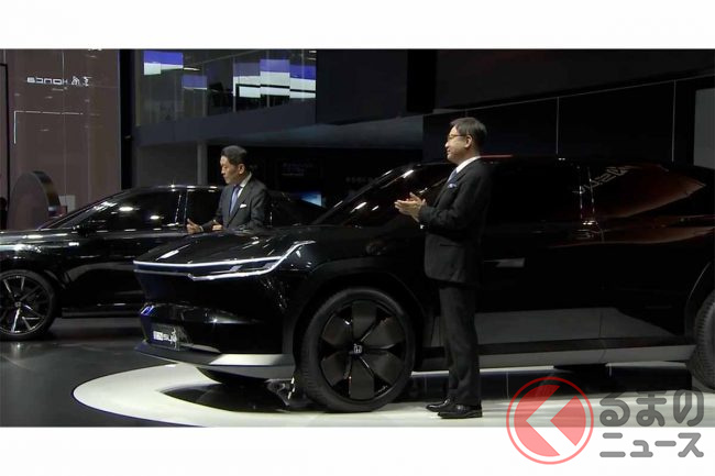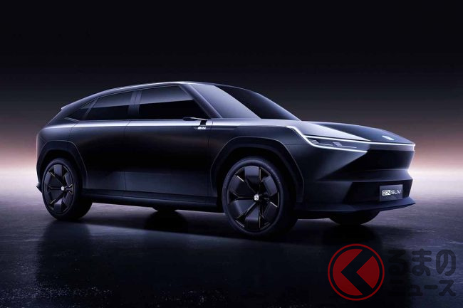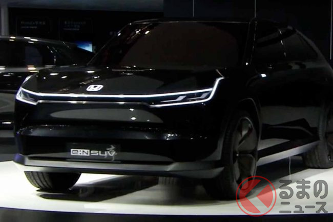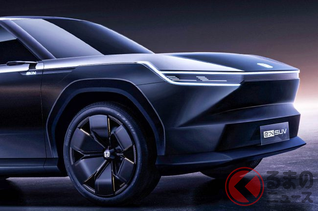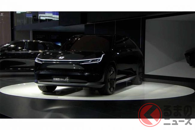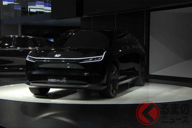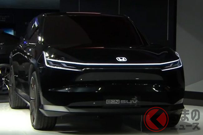 ホンダが新型「真っ黒SUV」実車展示! 直線デザイン&斬新ミラーがカッコいい! 2024年中国投入予定の「e:N SUV序」に期待の声も