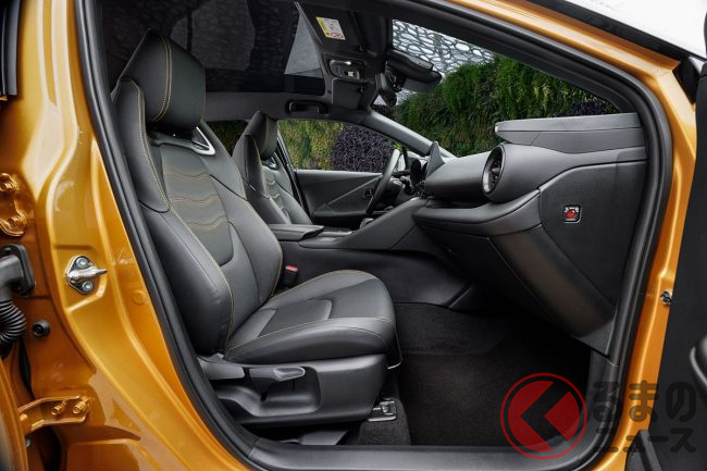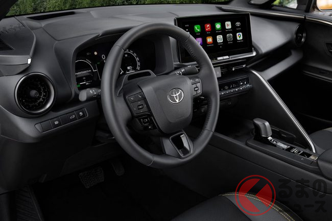 ボディサイズは全長4360mm×全幅1830mm×全高1558mm-1564mmと先代とほぼ同じ。クーペスタイルのコンパクトSUVという点も踏襲しているのですが、新型「プリウス」にも通じる「ハンマーヘッドデザイン」のフロントマスクに、ルーフからCピラー、リアバンパー周辺をブラックにしたツートーンカラーを用意するなど、前衛的なテイストにまとめられています。