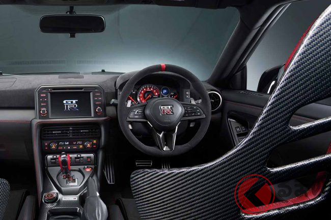 また、最新の2024年モデルは、水平基調を軸としたデザインに変更し、スタンスの良さを表現。さらに、新しいシグネチャーDTRL(デイタイムランニングライト)を採用し、新たな“GT-Rの顔”を作っています。