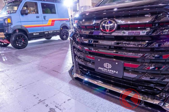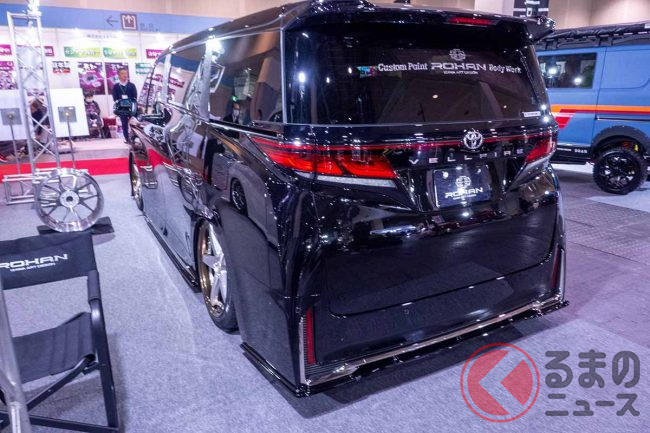 トヨタ「ヴェルファイア“ド迫力仕様”」実車展示! スポーティなエアロカスタムがカッコいい! ROHAN仕様登場