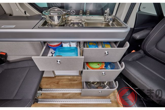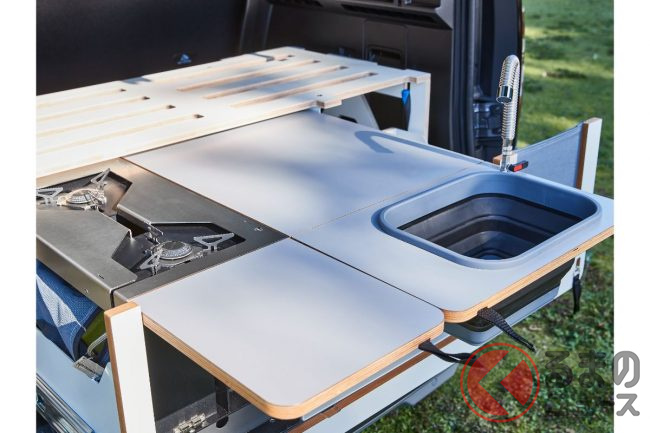 さらに室内のキャンピングカー機能としては、チューニングブランド・自動車部品を手掛けるイルムシャー製キッチン モジュール「Irmscher i-BOX」が両後部に取り付けられます。