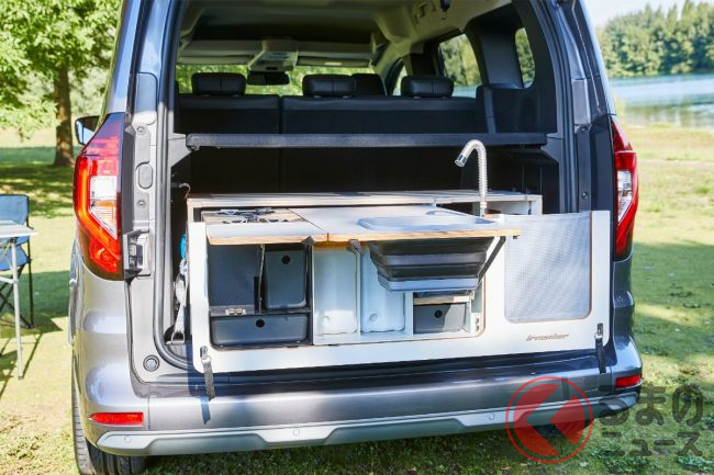 日産が「新型コンパクト“スライドドア”ハイトワゴン」車中泊仕様を実車展示! ガチ“キャンプ”仕様「タウンスター」ドイツでお披露目へ