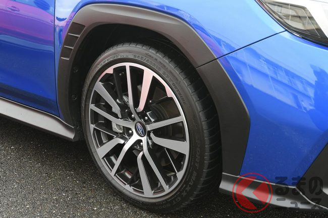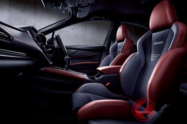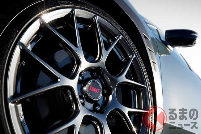 足回りには、ミシュラン製ハイパフォーマンスタイヤと、ステアリング操舵時の車両応答性を高めるため、タイヤの接地面積を最適化した前後で異なる形状のSTI製フレキシブルパフォーマンスホイールスバル初採用。
