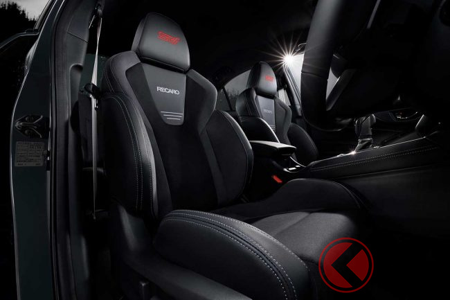 内装は、ウルトラスエードを使用したレカロシートやルーフトリムをブラックで統一。インパネミッドトリム&ドアトリム、センタートレイ加飾、フロアコンソールリッド、ドアアームレストなど、各所にシルバーステッチを施し、上質な空間を実現しました。