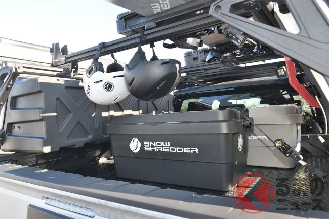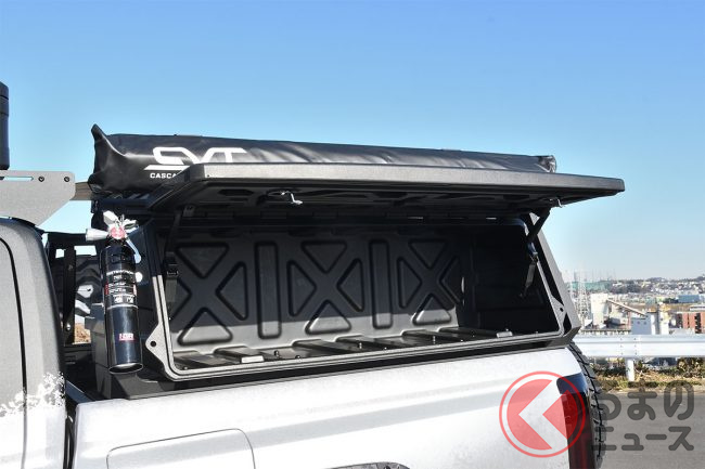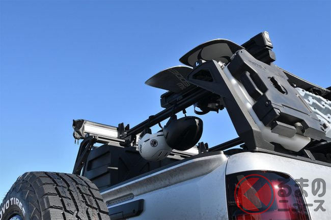 そしてピックアップトラックのキモでもある荷台部分には、アメリカンピックアップで定番のカーゴキャリアシステムを搭載しました。