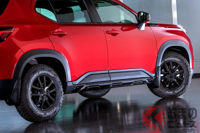 さらに足元には、標準装備の17インチから15インチにインチダウンしたアルミホイールには、オフロードにまで広く対応するタイヤが装備され、タフな印象を高めています。