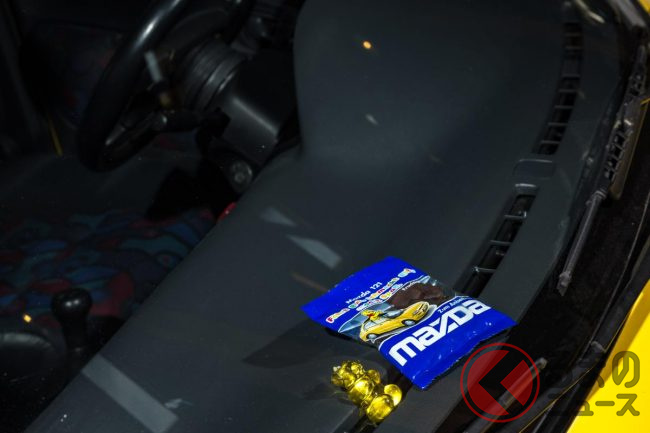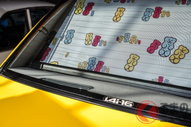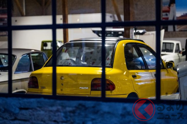 マツダの「超コンパクトセダン」に“クマ仕様”あった!? ホイールもサンシェードもクマ! グミも100袋ついてた「MAZDA121 Goldy」とは
