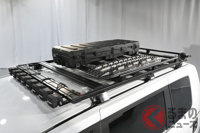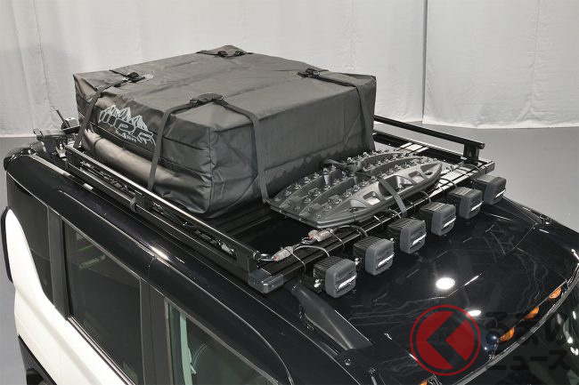 キャリアやトレーラーヒッチメンバー、走行性能を高めるリフトアップなどのカスタマイズを施した1台です。
