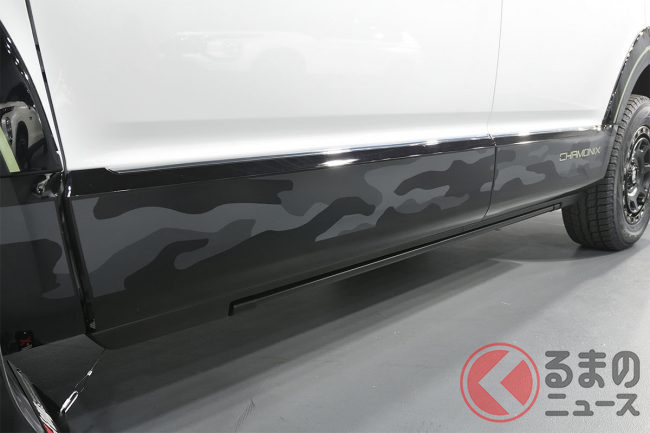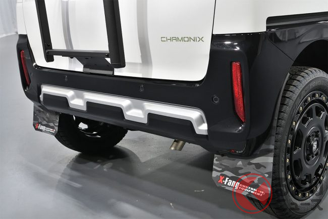 通常メッキ仕上げとなるグリル周りやウィンドウモール、リアバンパープロテクター、テールゲートガーニッシュ、サイドバーなどをブラック塗装で仕上げてモノトーン仕立てとなっている点も見逃せません。