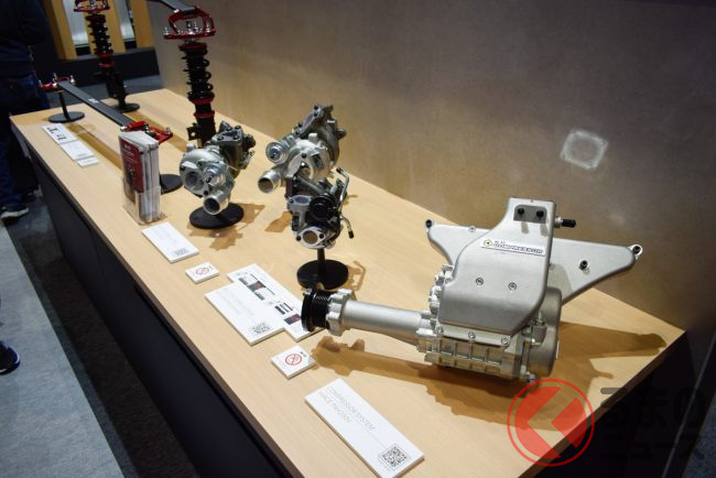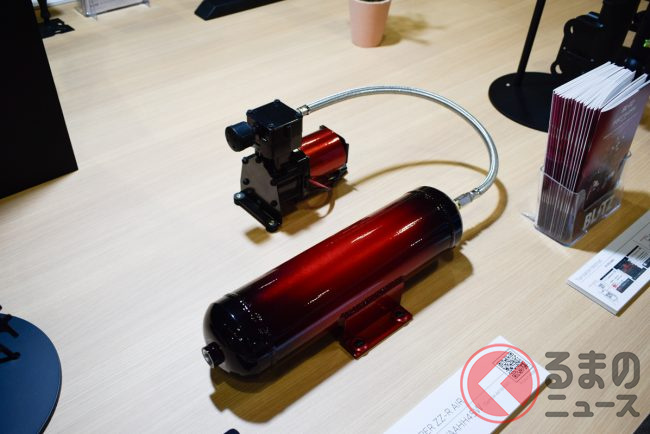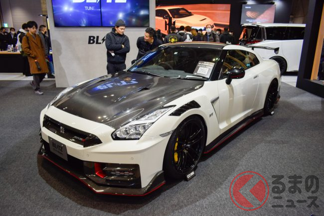GTR NISIMOにはBLITZのサスペンションにエアリフト機能を持たせた「DAMPER ZZ-R AIR SpecDSC PLUS」が装着され、約30mmのあいだで車両の車高を上下させることができます。NISMOのカーボンパーツに馴染むようなパーツも用意され、見ただけでも楽しめる展示となっていました。