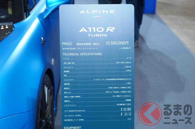 アルピーヌ「A110R TURINI」は、アルピーヌのF1チームが持つ軽量化や空力最適化の技術が投入されている車両であるアルピーヌ「A110 R」をベースに、ホイールをカーボン製からアルミ製に変更するなど、ストリートでの使用をより気軽にできるよう変更が加えられています。