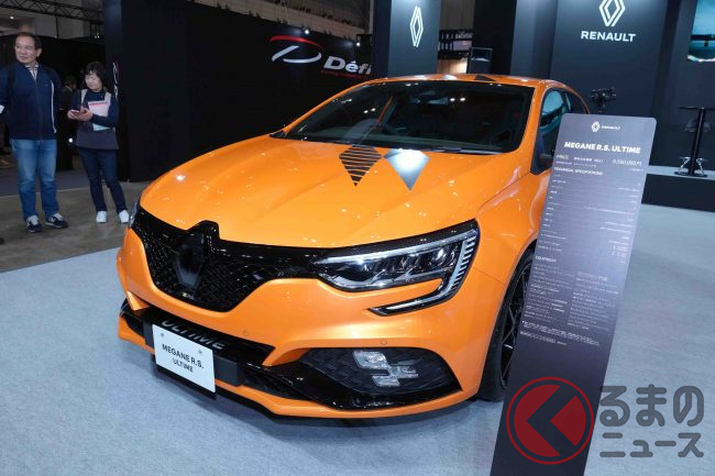 ルノー・グループの指針として、「R.S.(ルノー・スポール)」というブランドはアルピーヌに上位統合されることがアナウンスされています。展示されているルノー「メガーヌ R.S. ULTIME」は2023年の東京オートサロンで発表されたモデルですが、いわば「集大成ともいえる」とルノー・ジャポンの小川隼平社長は語ります。