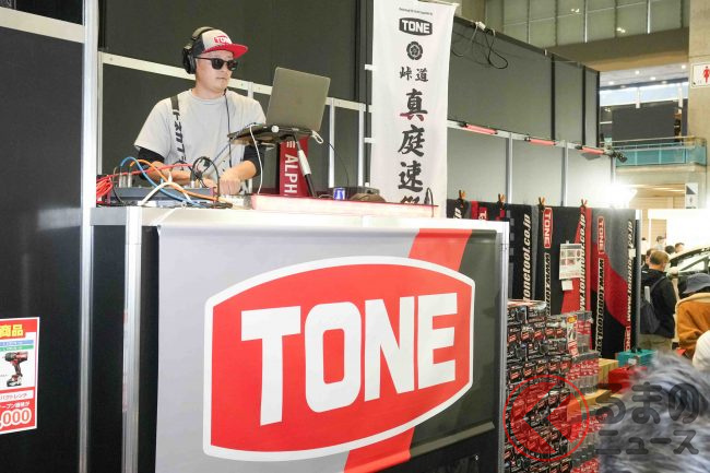 2023年に「ロック」から社名変更をした「TONE ALPHA」が「東京オートサロン2024」にブースを出展。「TONE」ブランドの工具などを販売しました。