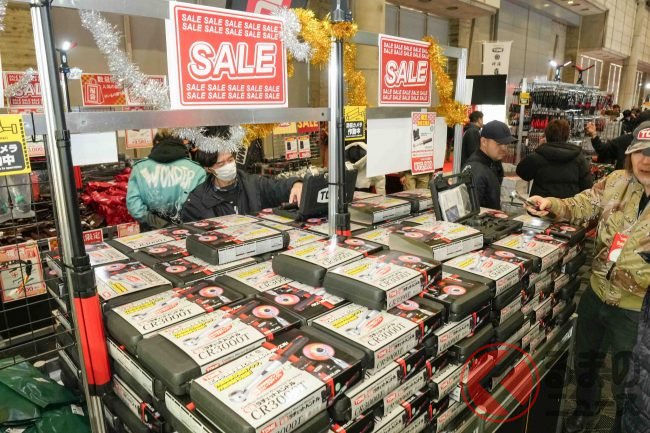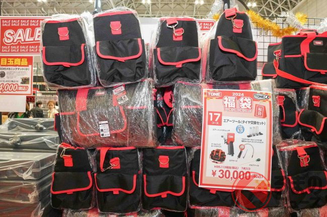 東京オートサロン2024のブースでは、TONEブランドの工具やグッズなどの展示と合わせて、製品が特別価格で購入できる値引き販売も実施。また、福袋販売も行い、定価8万5113円(税込み)相当の商品が3万円(税込み)で購入できるなど値下げ幅も大きく、多くの来場者でにぎわっていました。