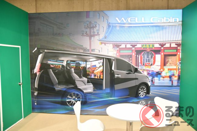 一方「WELL Cabin concept B」と名付けられたトヨタ「ヴェルファイア」は、「WELL Cabin concept A」同様に「高臨場感ウェルキャビン」のコンセプトカーですが、インバウンドを含む富裕層がターゲットユーザーとして想定されています。観光やスポーツ観戦の目的地へ送迎するサービスの車内空間を高品質に演出することで、ワクワク感を刺激し、質の高いおもてなしを実現することが目的とされています。