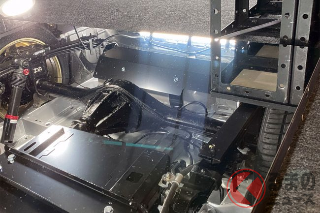 エンジンは発電に特化したシリーズハイブリッド方式(日産の「e-POWER」と同じ)で、モーターユニットは既存のトランスミッションユニットと同じ全長で造ったため、純正のプロペラシャフトがそのまま使えるといいます。