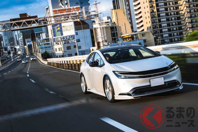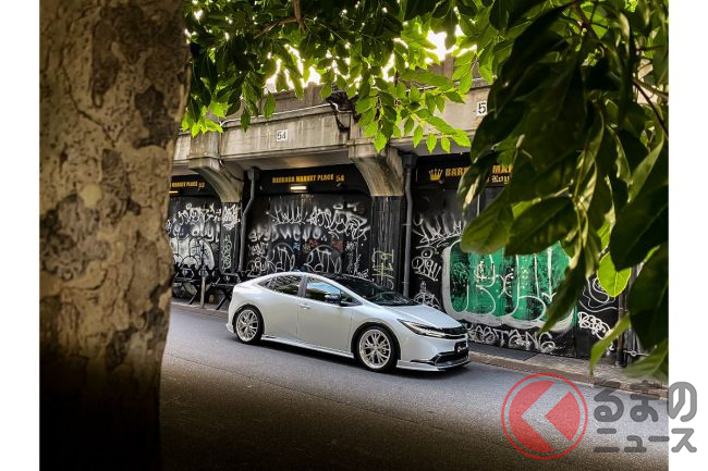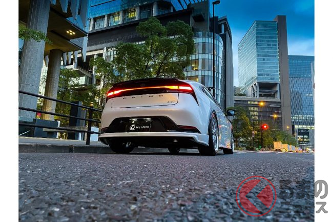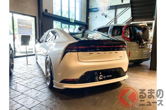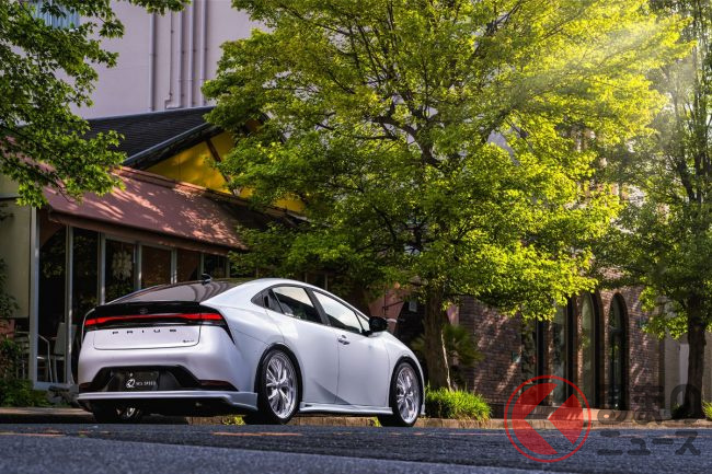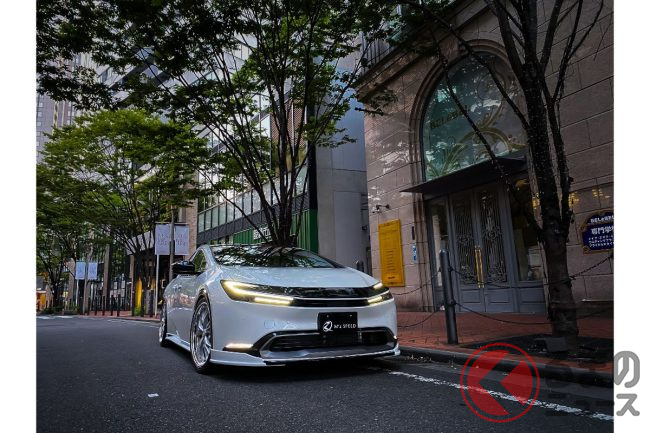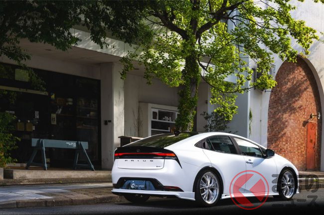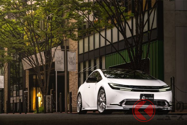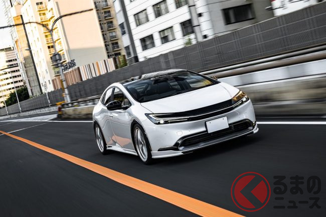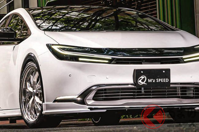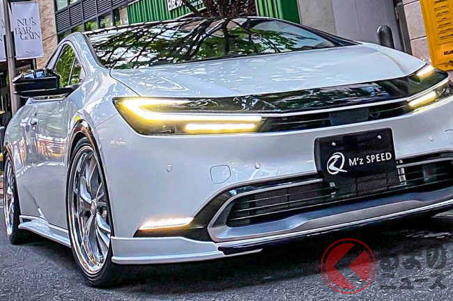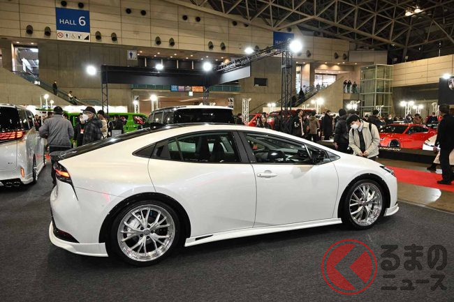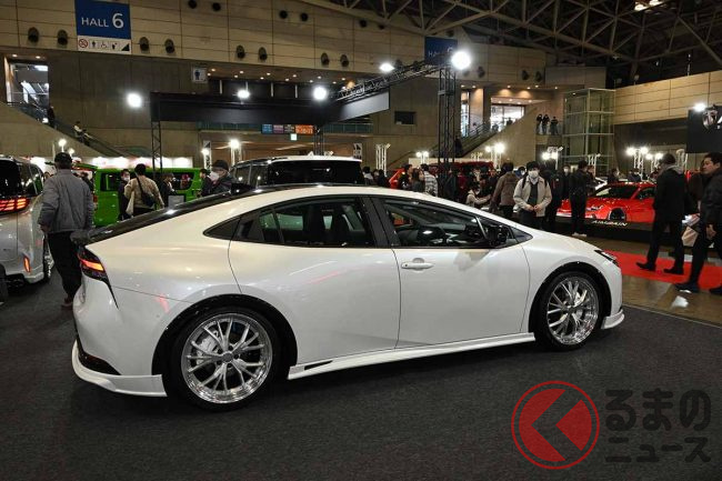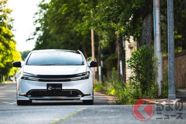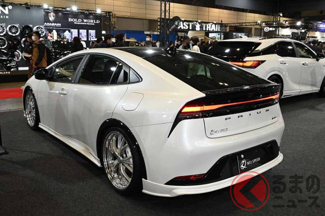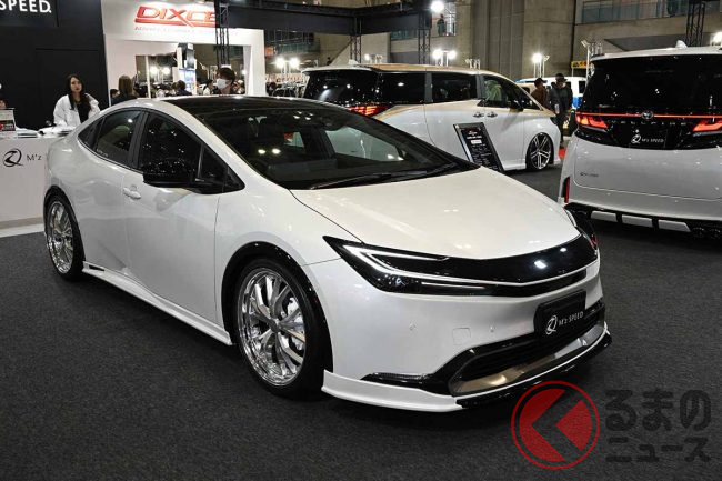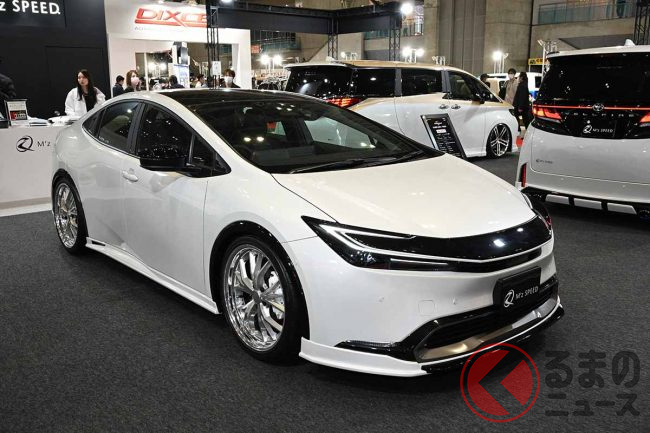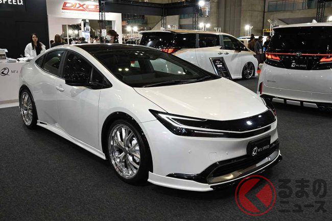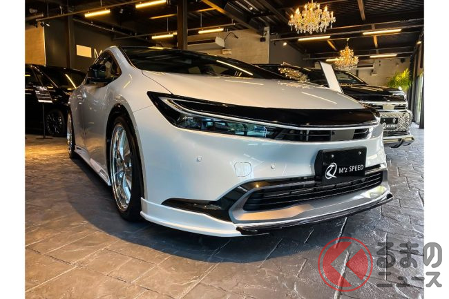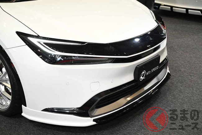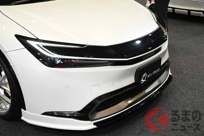 トヨタ新型「プリウス“ド迫力エアロ仕様”」実車公開! 斬新「黒マスク顔」がカッコいい! エムズ仕様登場