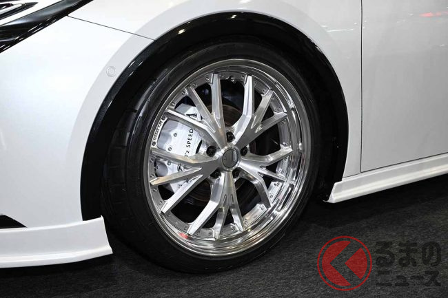 会場のデモカーは、これらのパーツとともに、足下に20インチの「JJ Launcher」も装着。より鋭い顔つきと迫力あるパーツ類で、スポーティな印象に仕上がっています。