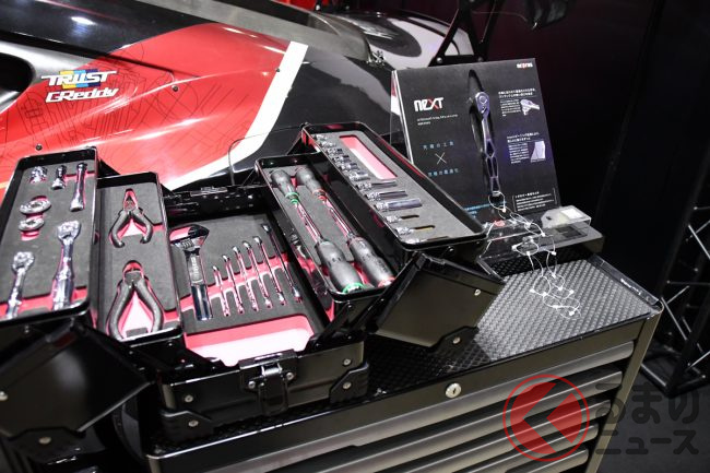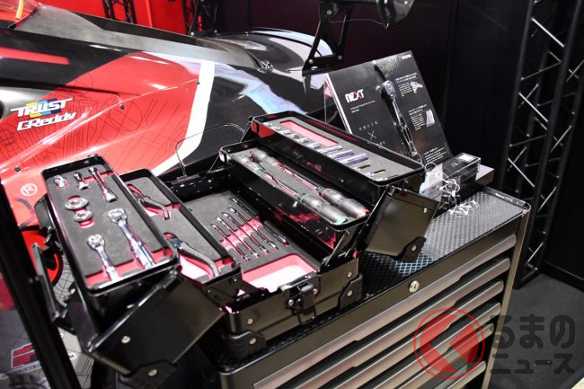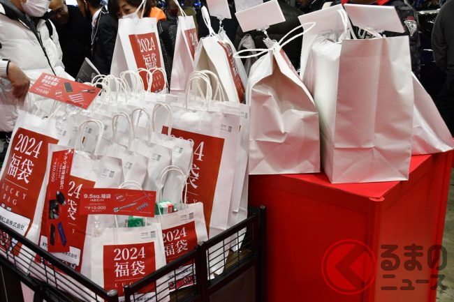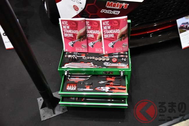 日本のみならず、北米への進出を狙うKTC。東京オートサロン2024のブースでは、KTCオフィシャルグッズに加え、工具などが入った福袋が複数用意され、多くの来場者でにぎわっていました。