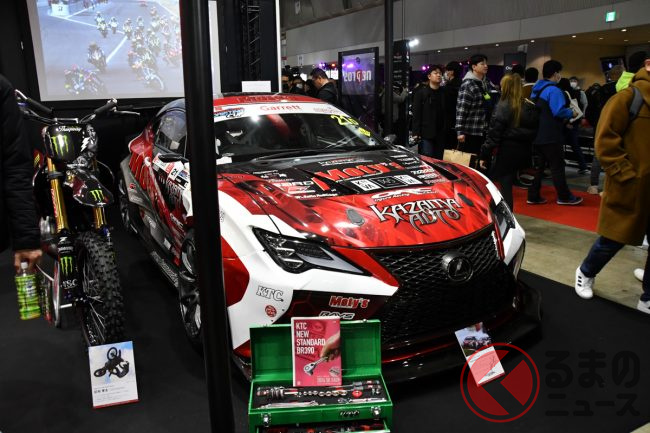 KTCが「東京オートサロン2024」にブースを出展。FORMULA DRIFT JAPANに参戦するレクサス「RC」を初披露したほか、モトクロッサーも展示されました。
