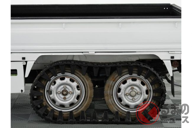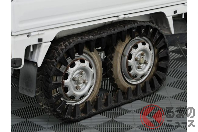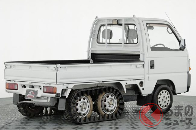 アクティ2代目モデルのうち、1994年1月の改良で追加された「アクティ クローラ」は後輪を改造し、4輪または脱着可能な履帯(いわゆる「キャタピラ」)を選択できる特別モデルです。