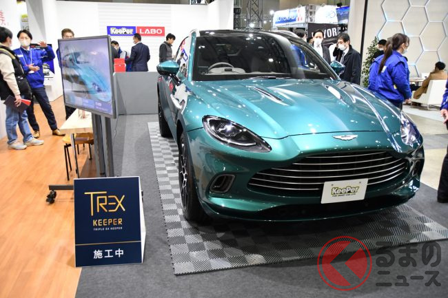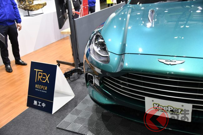 KeePer技研が「東京オートサロン2024」にブースを出展。これまでの同社最高峰ボディコーティングだった「EXキーパー」を上回る美しさを誇る「TREX(ティーレックス)キーパー」を施工したアストンマーティン「DBX」を展示しました。