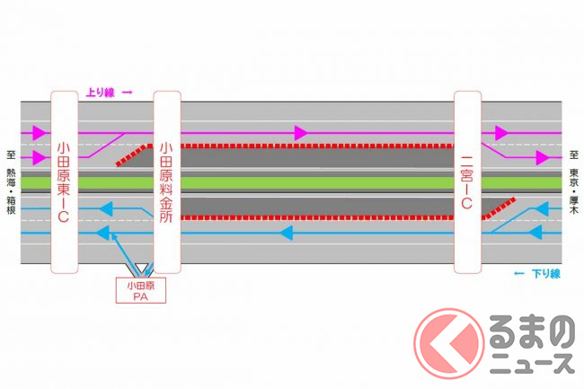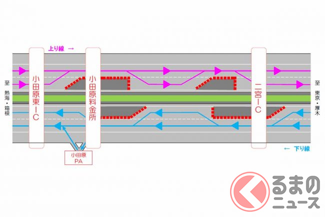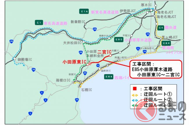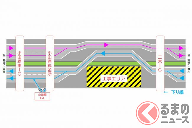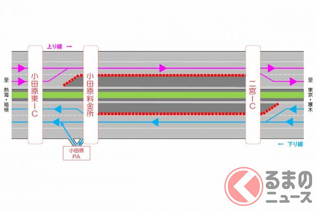 NEXCO中日本は2023年1月15日、小田原厚木道路で、4月から8月にかけてリニューアル工事を実施すると発表しました。車線規制により最大15kmの渋滞を予測しています。