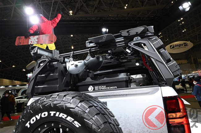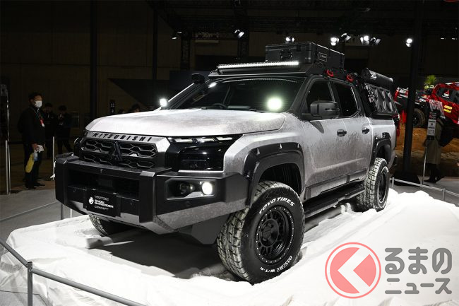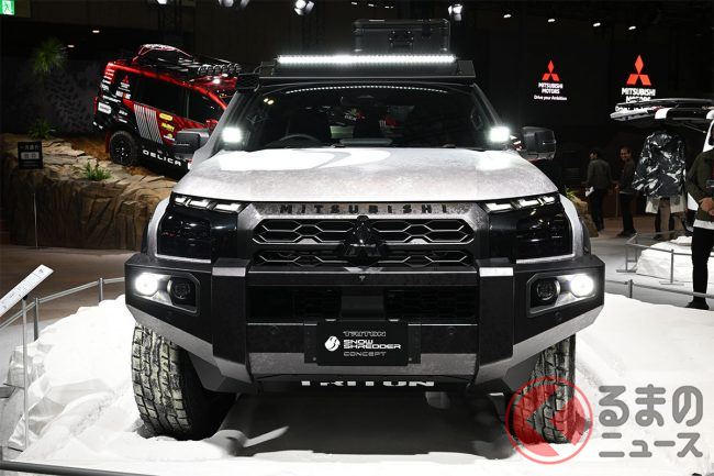 ![2024年2月におよそ12年ぶりの国内復活を遂げる三菱の新型「トライトン」[写真は東京オートサロン2024に出展されたカスタムカー「SNOW SHREDDER CONCEPT(スノーシュレッダーコンセプト)」(参考出品モデル)]](https://kuruma-news.jp/wp-content/uploads/2025/01/20240117_MITSUBISHI_TRITON_SNOW_SHREDDER_001.jpg?v=1705459512)